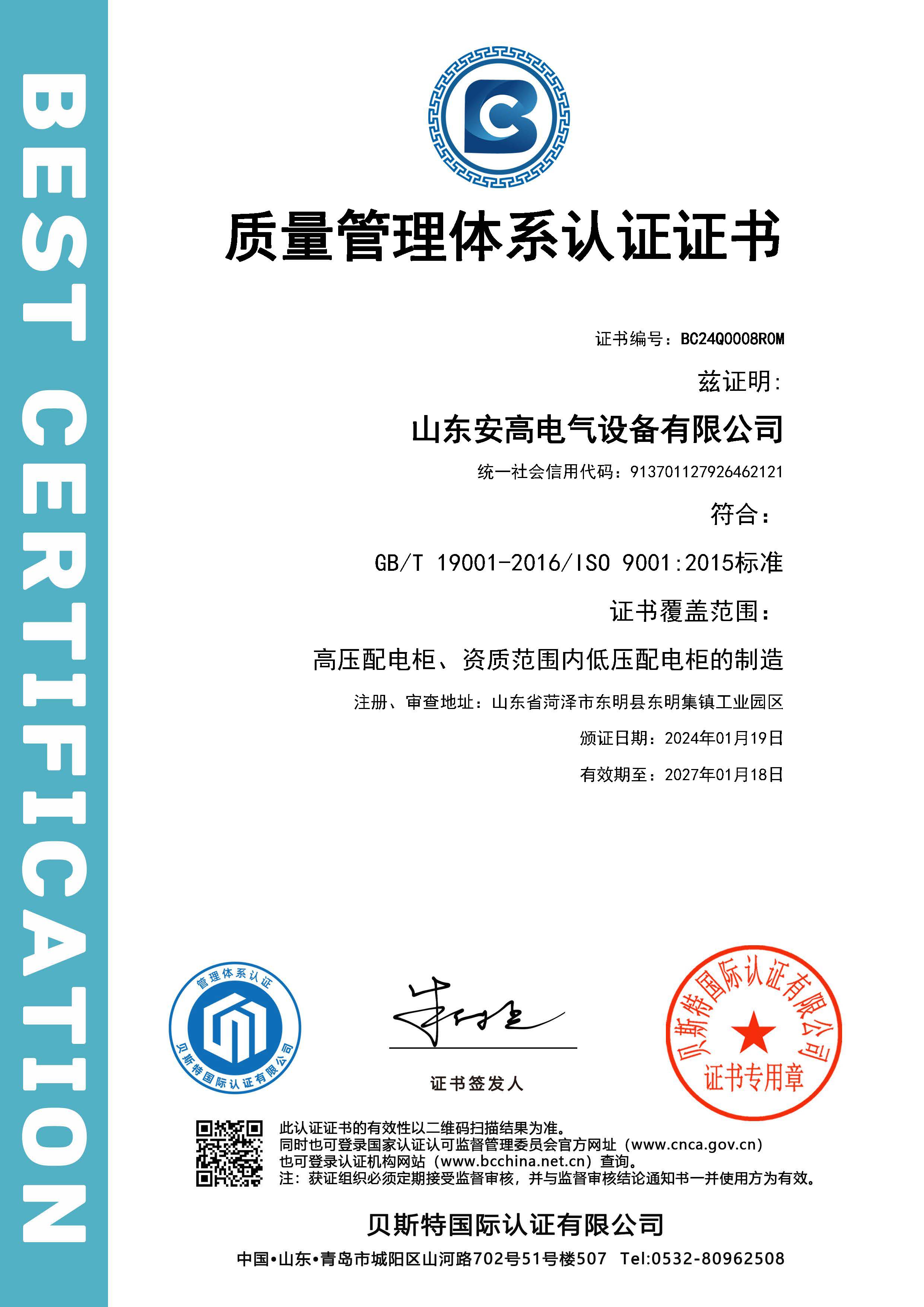 • 質(zhì)量管理體系認證